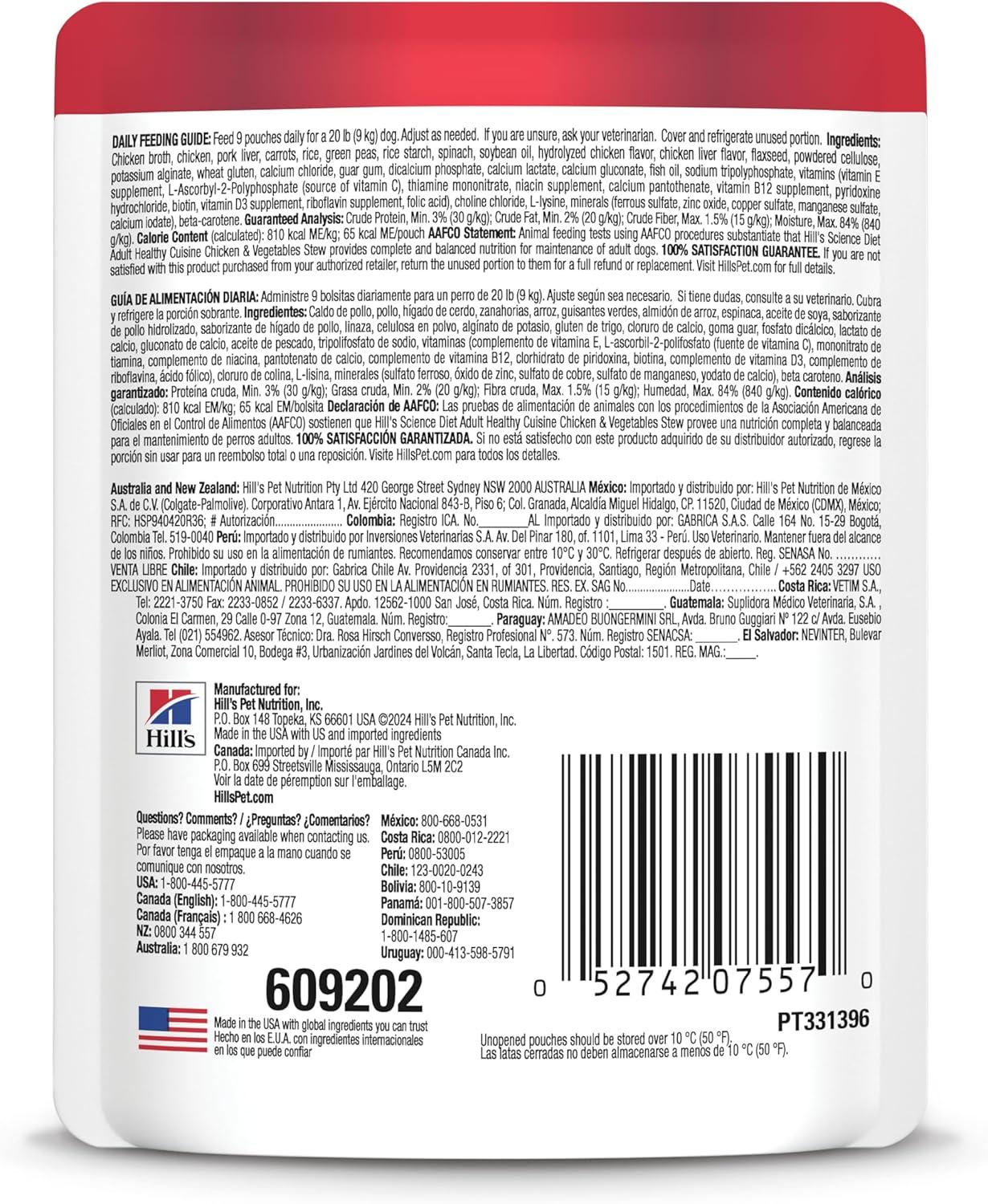Hill’s Science Diet Adult 1-6 Healthy Cuisine Wet Dog Food, Chicken & Vegetables Stew, 2.8 oz Pouch, 24-Pack