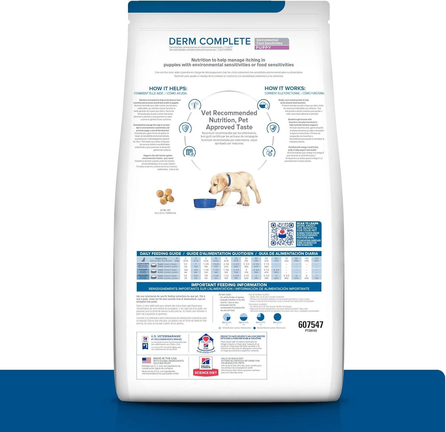 Hill’s Prescription Diet Derm Complete Puppy Environmental/Food Sensitivities Rice & Egg Recipe Dry Dog Food, Veterinary Diet, 14.3 lb. Bag