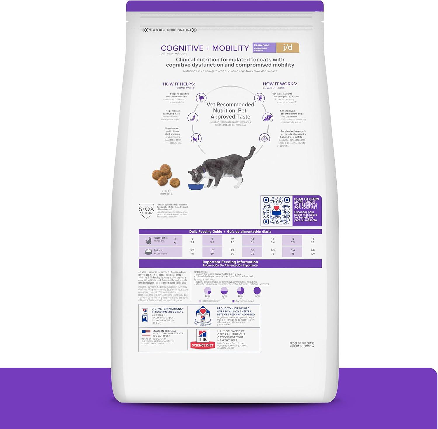 Hill’s Prescription Diet Brain Care + j/d Joint Care Feline Dry Cat Food with Salmon, 4 lb Bag