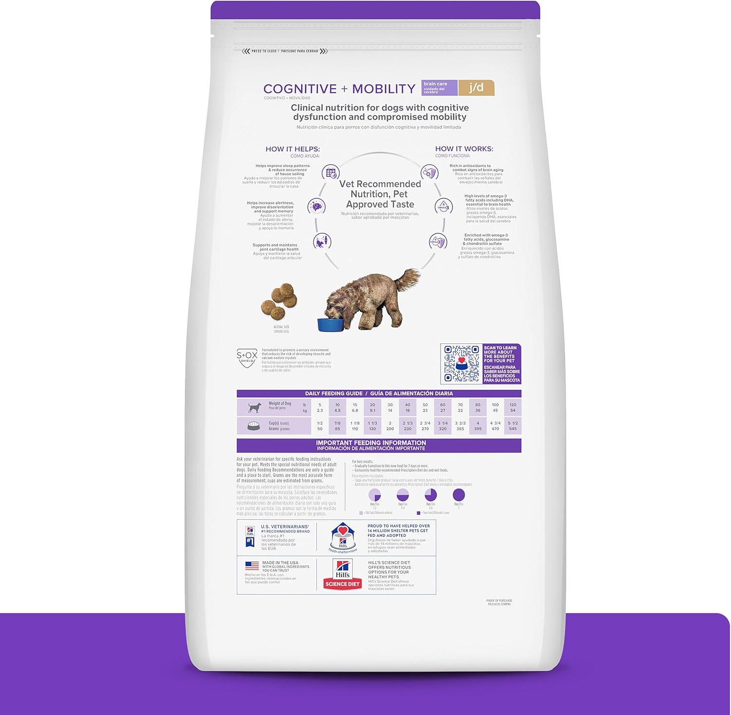 Hill’s Prescription Diet Brain Care + j/d Joint Care Chicken Dry Dog Food, 8.5 lb Bag