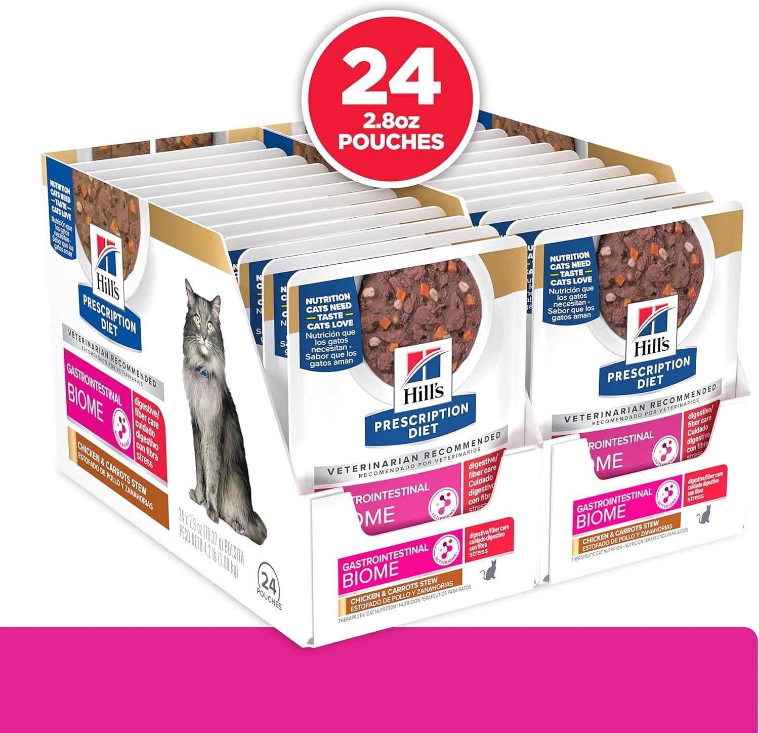 Hill’s Prescription Diet Gastrointestinal Biome + Stress Chicken & Carrot Stew Wet Cat Food, 24 x 2.8 oz Pouches