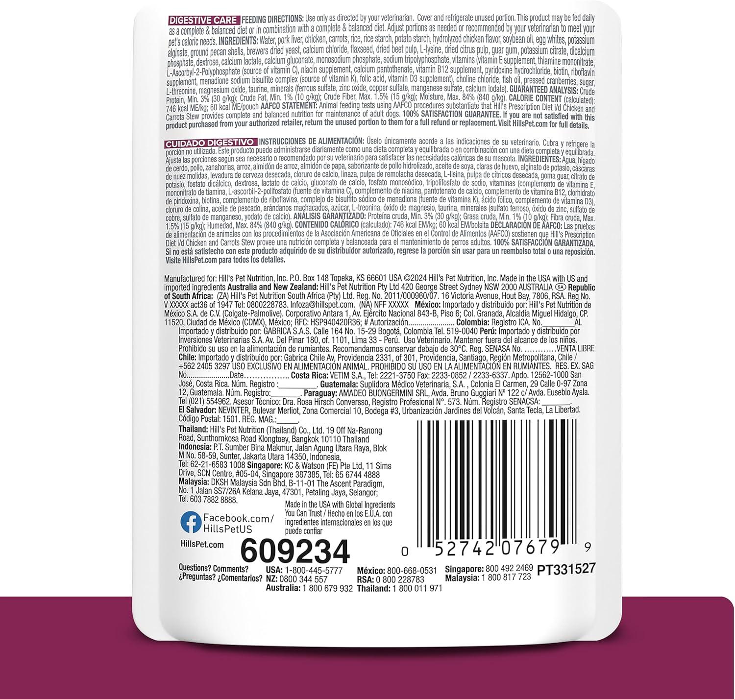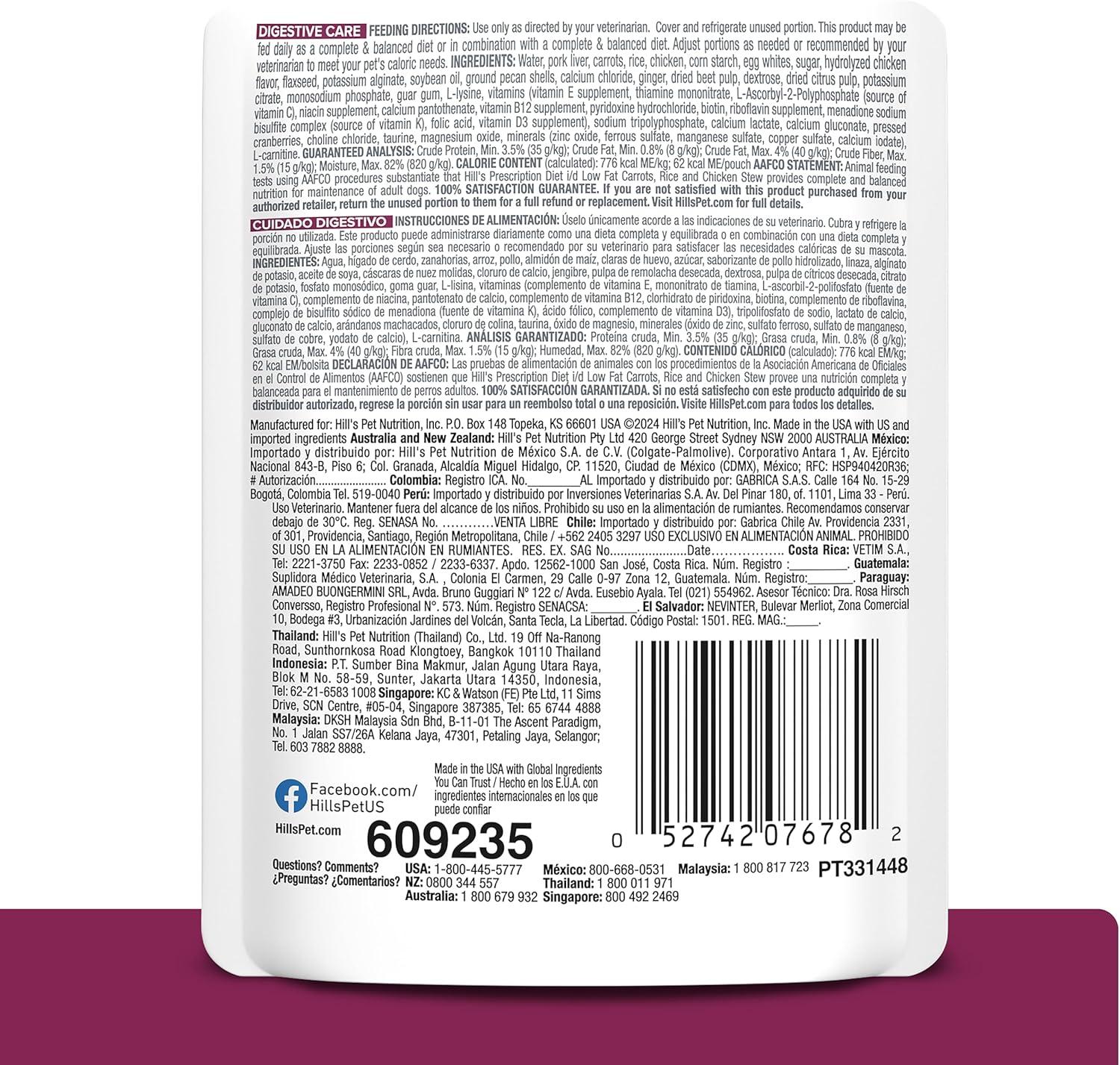 Hill’s Prescription Diet i/d Low Fat Carrot, Chicken & Rice Stew Wet Dog Food, 24 x 2.8 oz Pouches