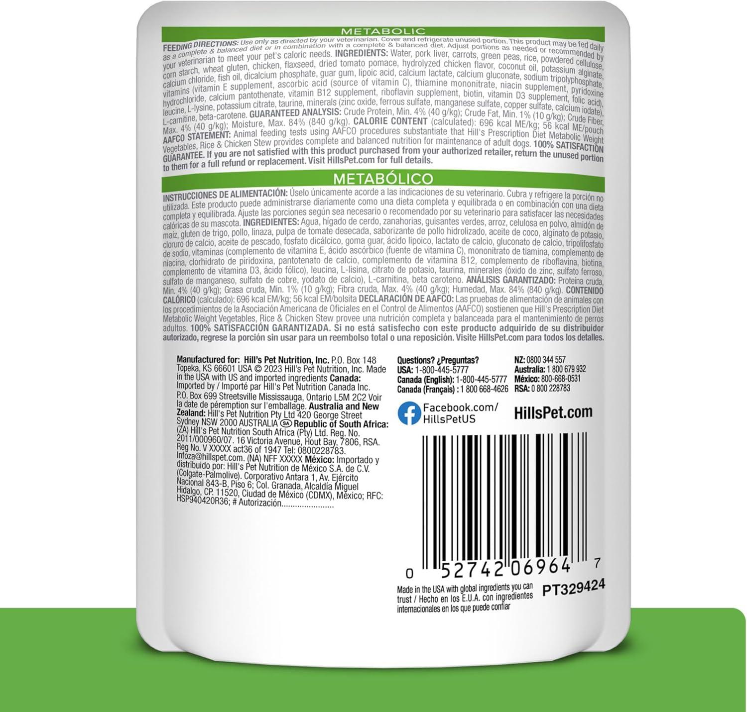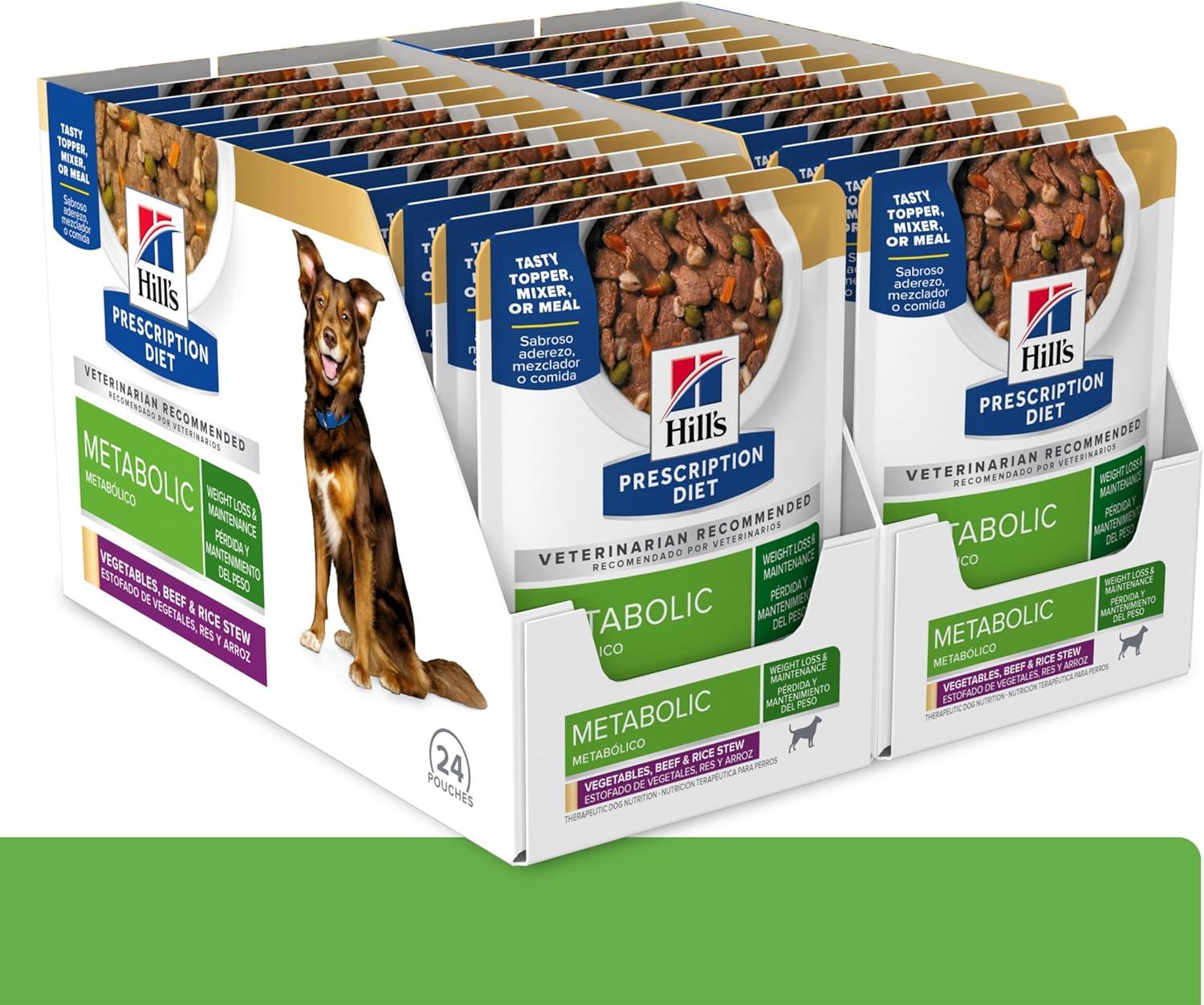 Hill’s Prescription Diet Metabolic Weight Management Chicken Flavor Wet Dog Food, Veterinary Diet, 13 oz. Cans, 12-Pack(Vegetable & Beef Stew)