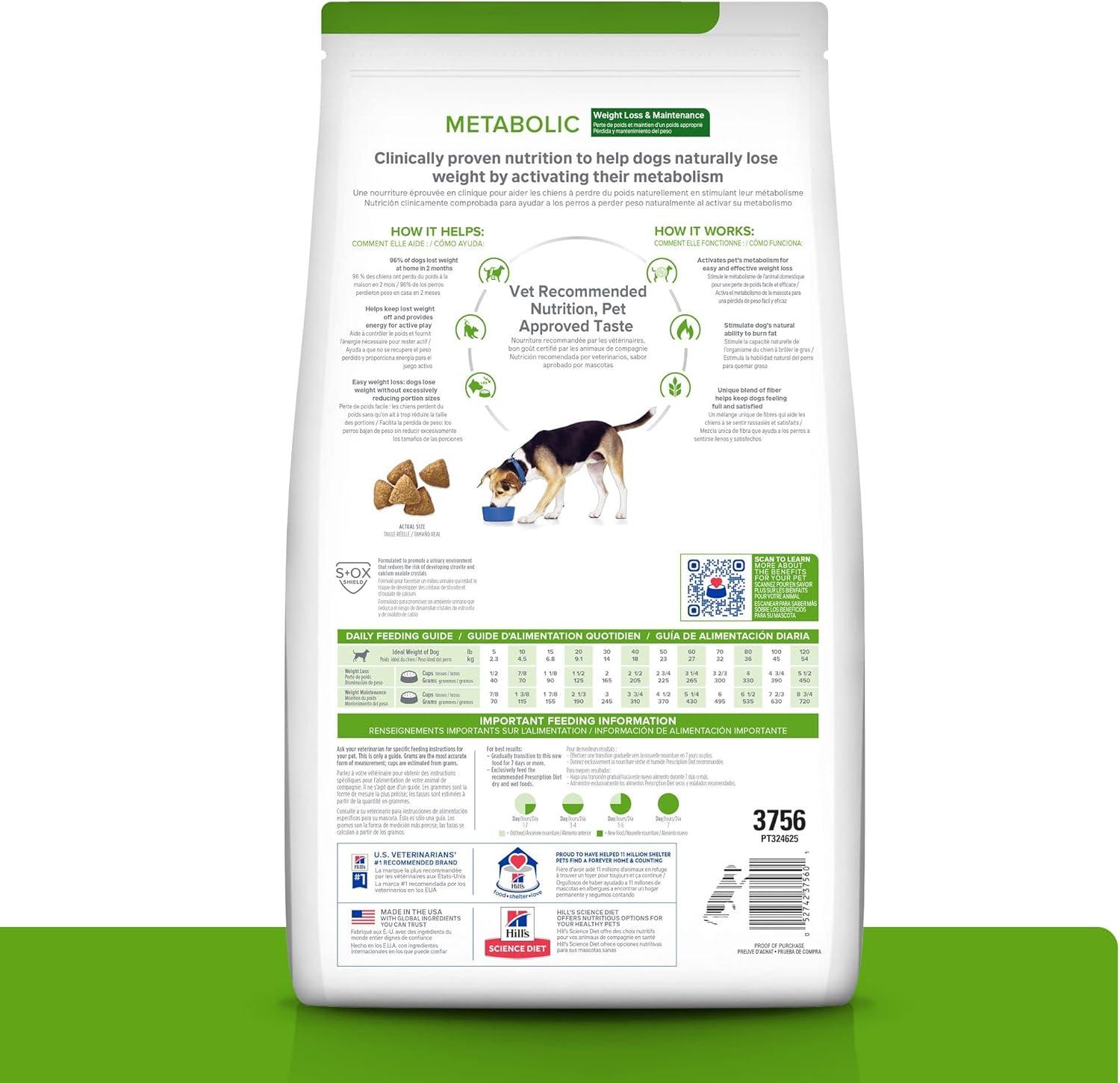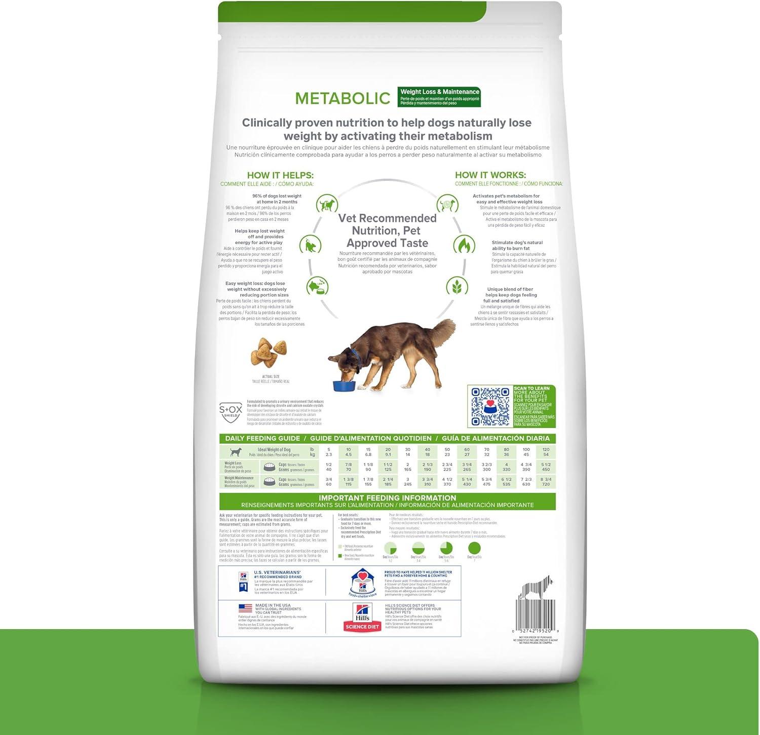 Hill’s Prescription Diet Metabolic Weight Management Chicken Flavor Dry Dog Food, Veterinary Diet, 27.5 lb. Bag(Lamb Meal & Rice)