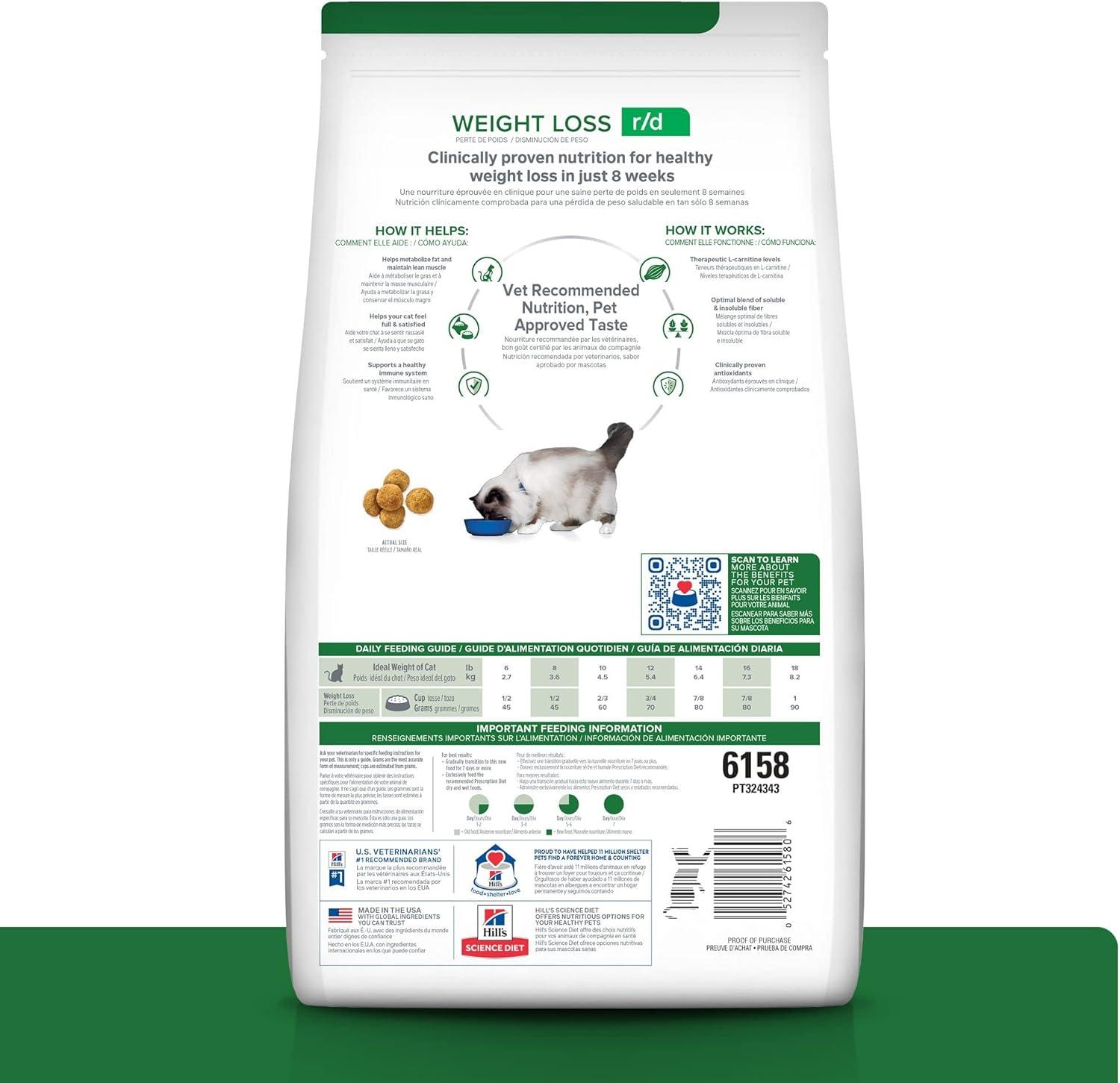 Hill’s Prescription Diet r/d Weight Reduction Chicken Flavor Dry Cat Food, Veterinary Diet, 8.5 lb. Bag(Chicken)