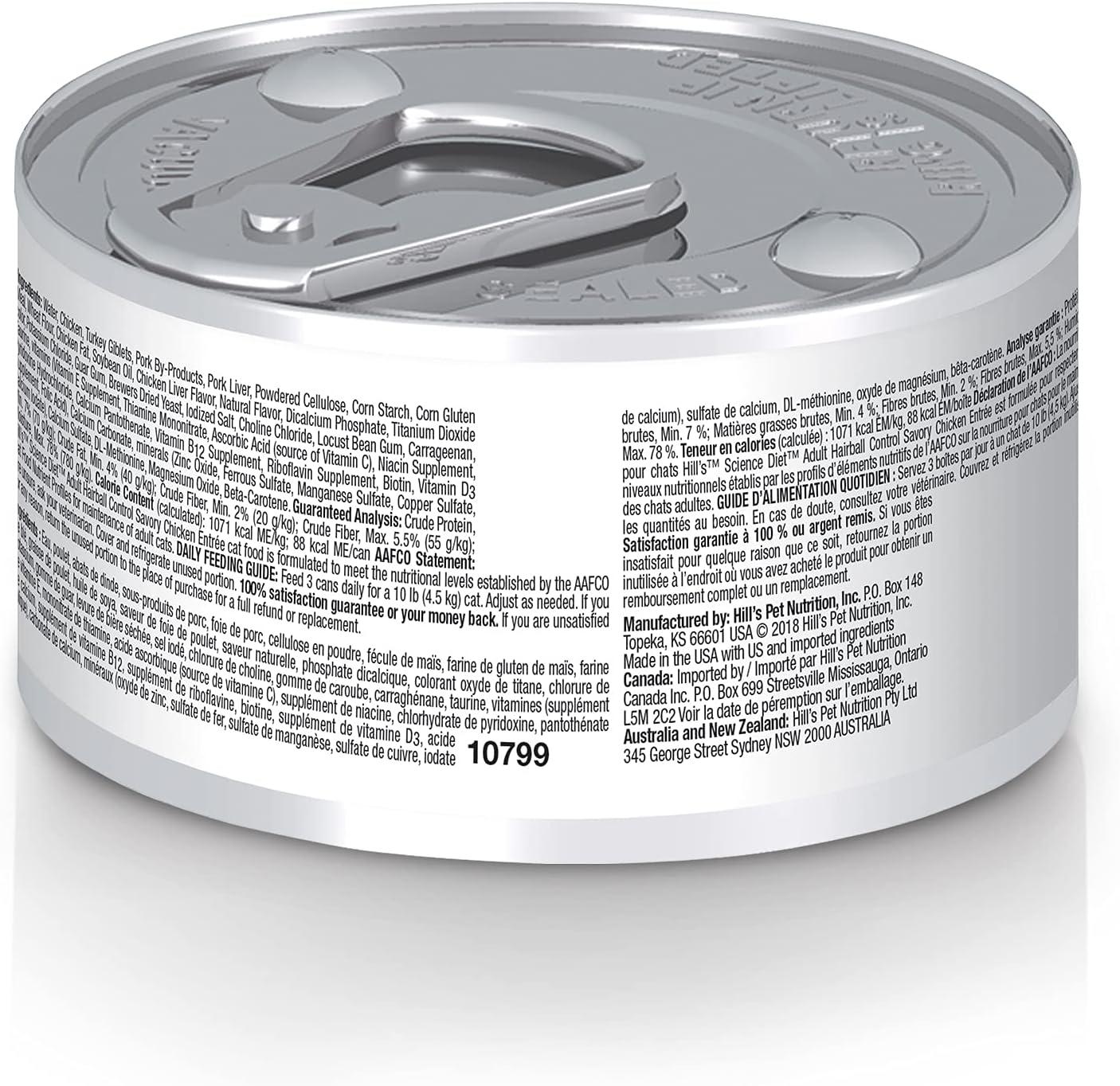 Hill’s Science Diet Hairball Control, Adult 1-6, Hairball Control Support, Wet Cat Food, Chicken Minced, 5.5 oz Can, Case of 24(Chicken Minced)