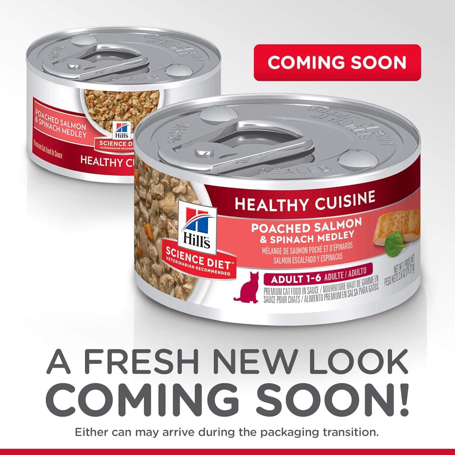 Hill’s Science Diet Healthy Cuisine, Adult 1-6, Great Taste, Wet Cat Food, Roasted chicken & Rice Stew, 2.8 oz Can, Case of 24(Poached Salmon & Spinach Stew)