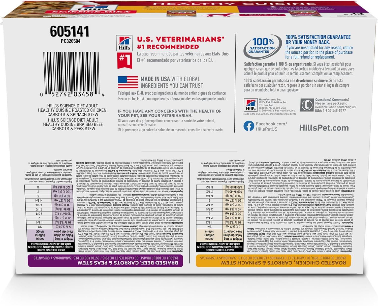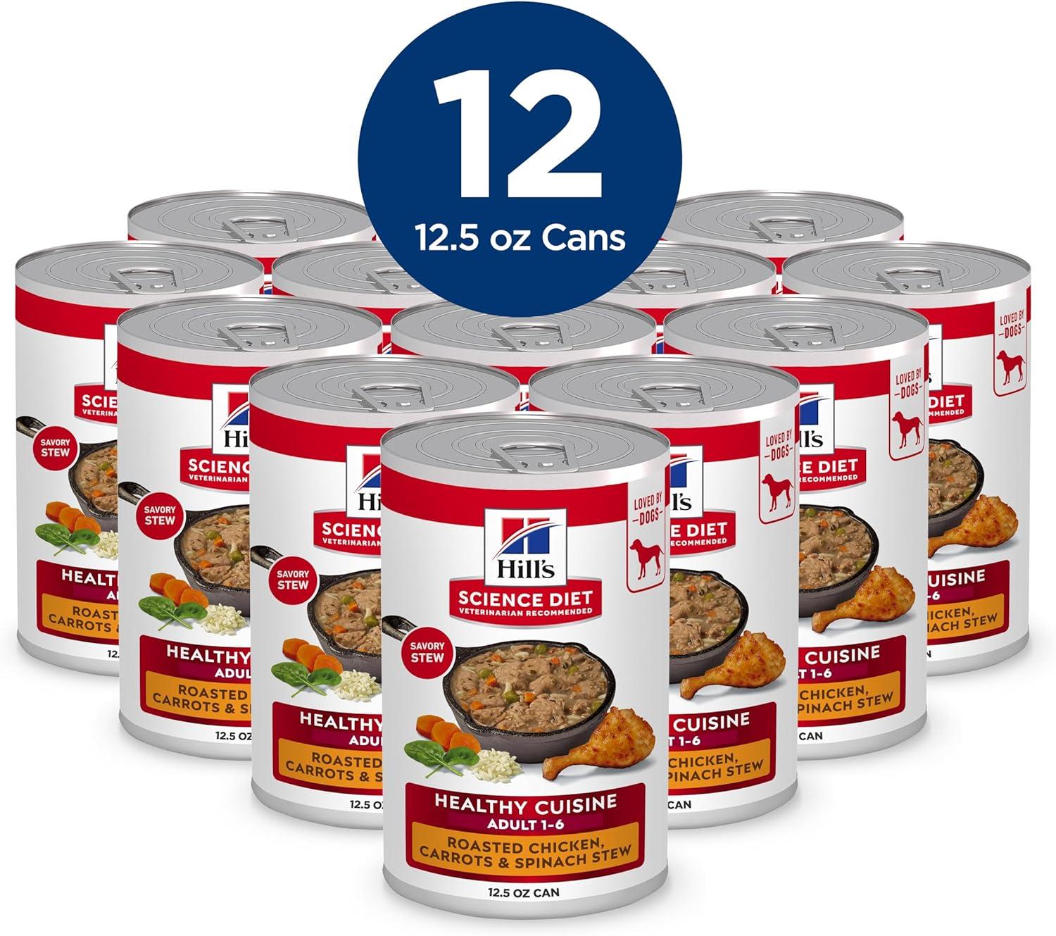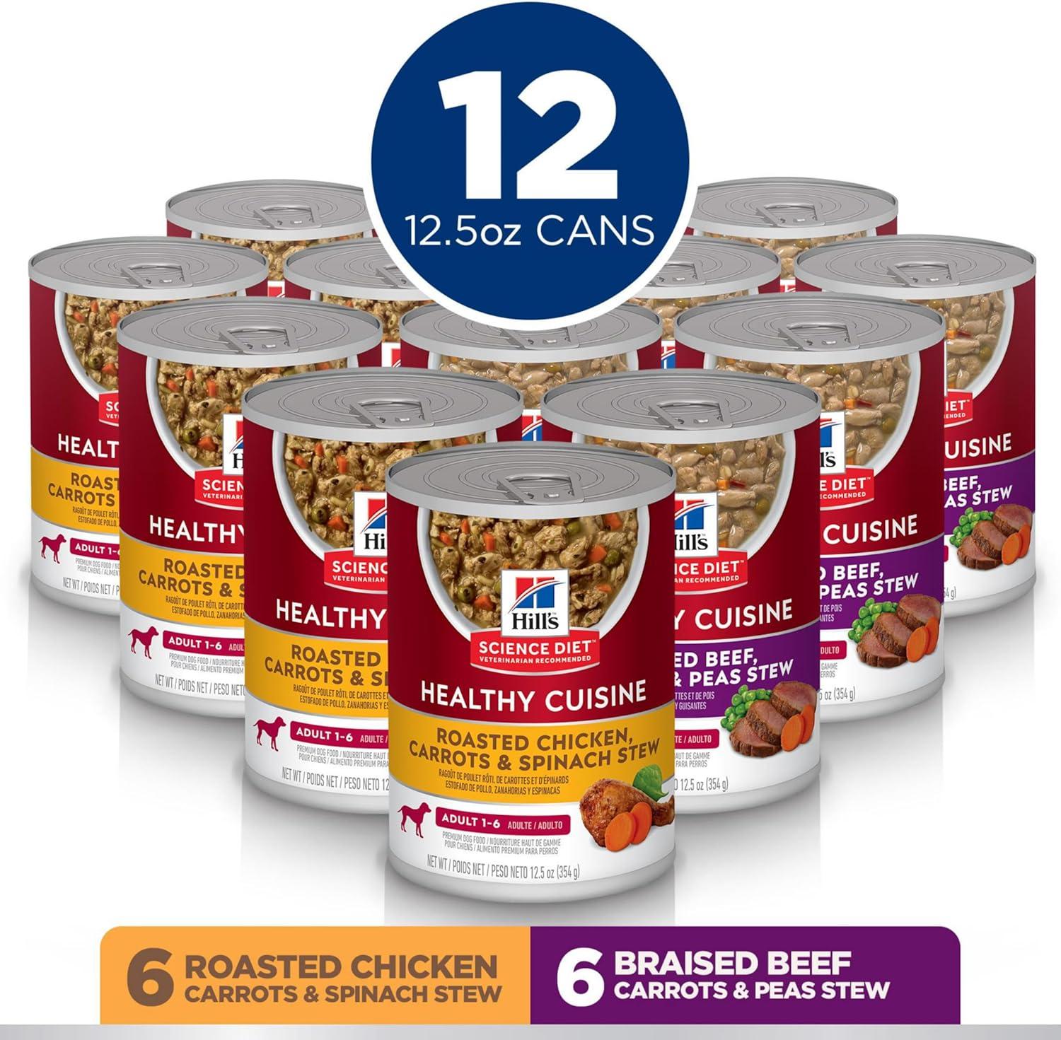 Hill’s Science Diet Healthy Cuisine, Adult 1-6, Great Taste, Wet Dog Food, Variety Pack: Roasted Chicken, Carrots & Spinach; Braised Beef , Carrots & Peas Stew, 12.5 oz Can Variety Pack, Case of 12(Variety Pack: Roasted Chicken Carrots & Spinach; Braised Beef Carrots & Peas Stew)
