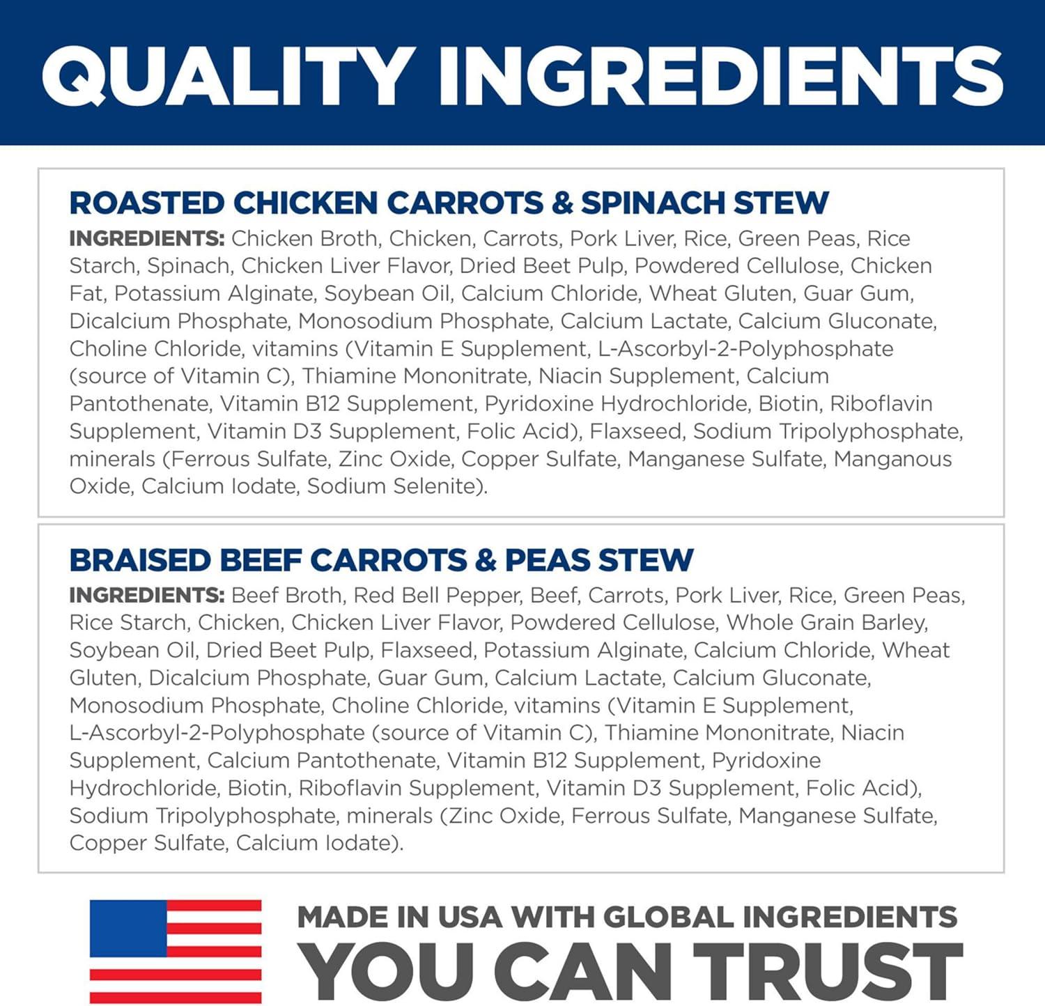 Hill’s Science Diet Healthy Cuisine, Senior Adult 7+, Senior Premium Nutrition, Wet Dog Food, Braised Beef, Carrots & Peas Stew, 12.5 oz Can, Case of 12(Roasted Chicken Carrots & Spinach Stew)