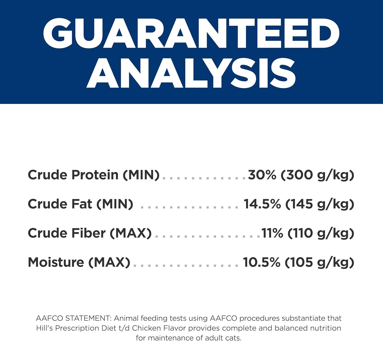 Hill's Prescription Diet t/d Dental Care Chicken Flavor Dry Cat Food is specially formulated by Hill’s nutritionists and veterinarians to support your cat’s dental health