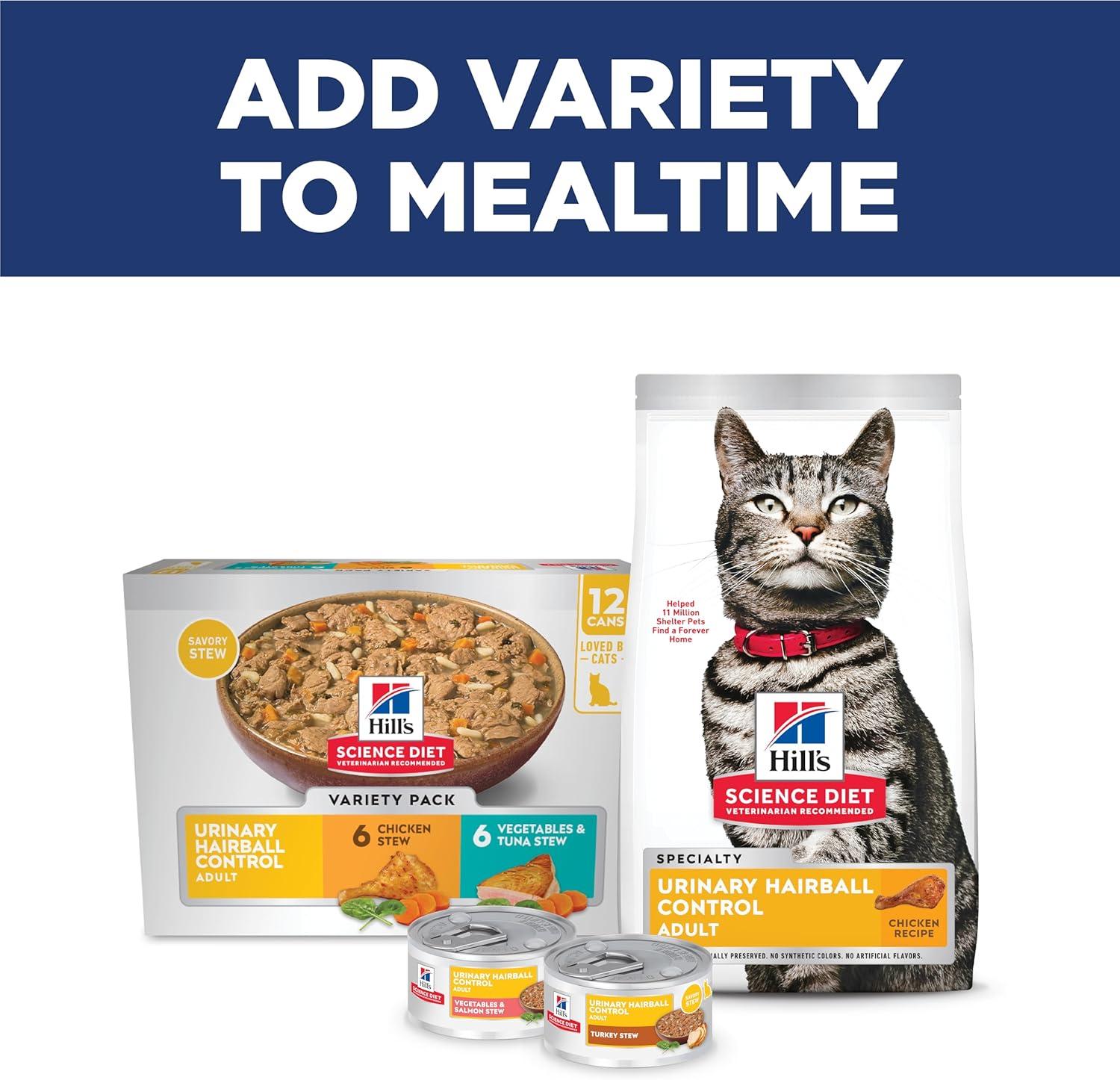 Hill’s Science Diet Urinary Hairball Control, Adult 1-6, Urinary Track Health & Hairball Control Support, Dry Cat Food, Chicken Recipe, 7 lb Bag(Chicken)