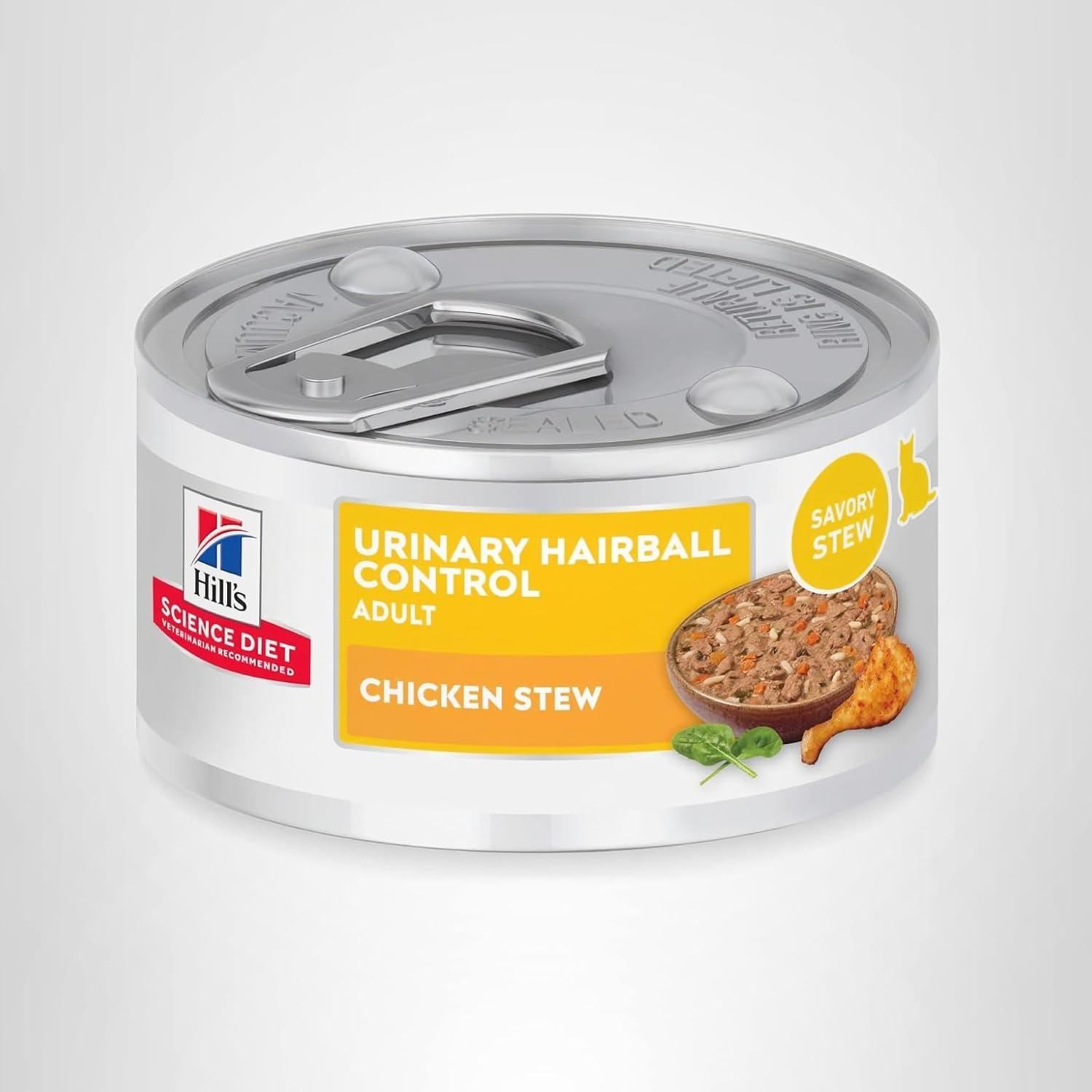 Hill’s Science Diet Urinary Hairball Control, Adult 1-6, Urinary Track Health & Hairball Control Support, Wet Cat Food, Chicken Minced, 2.9 oz Can, Case of 12(Chicken & Vegetables Stew)